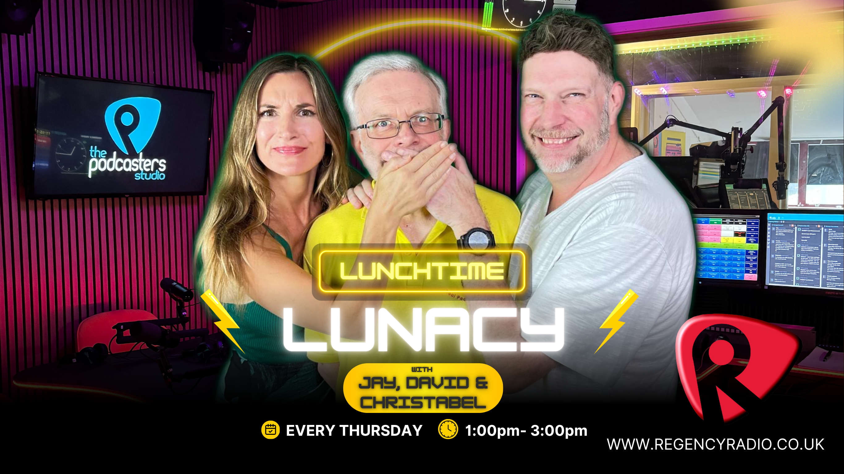 Join Jay Jackson, David "Lego" Legge and Christabel Cossins for music, quizzes and some big laughs!